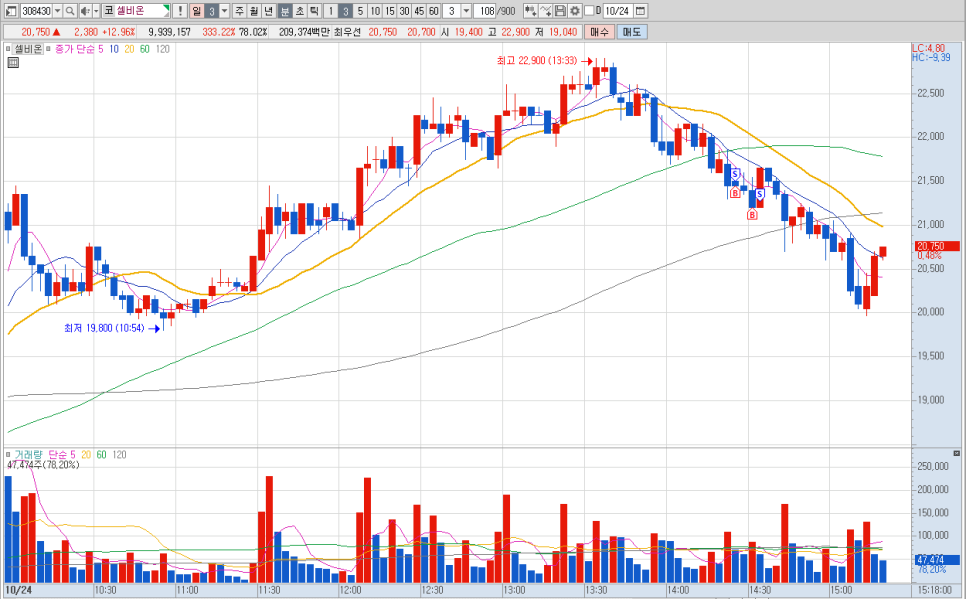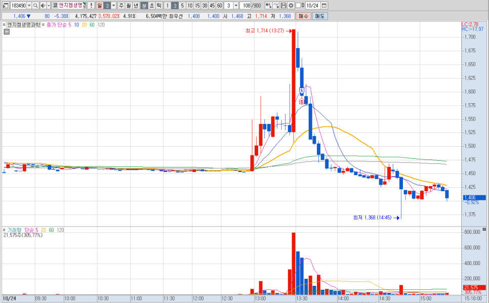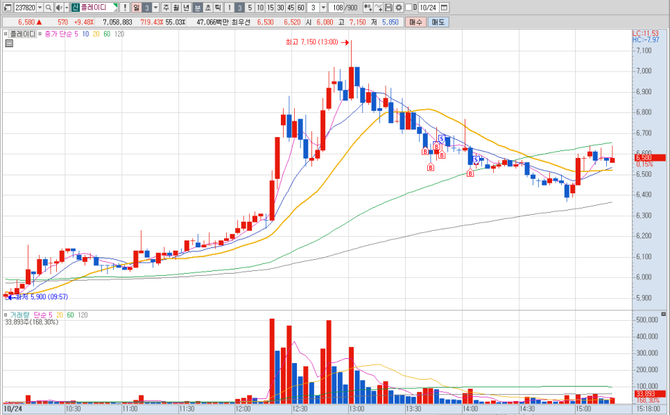 눌림목 매매에 부합하는지 조건을 살펴볼 새도 없이 손가락이 나가버렸다.