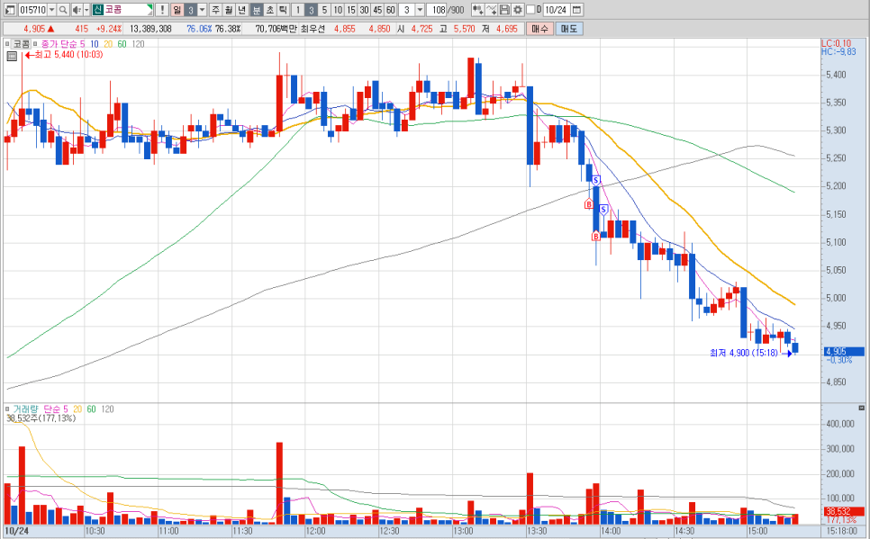24년 10월 24일 국내 주식 매매일지 매매종목: TKG애강, 드림어스컴퍼니, 코콤, 엔지켐생명과학, 플레이...