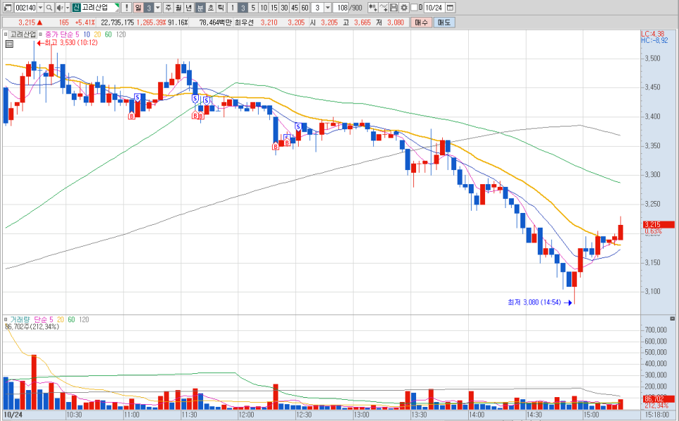 - 6거래일 연속 하락 후, 반등하며 VI 발동.