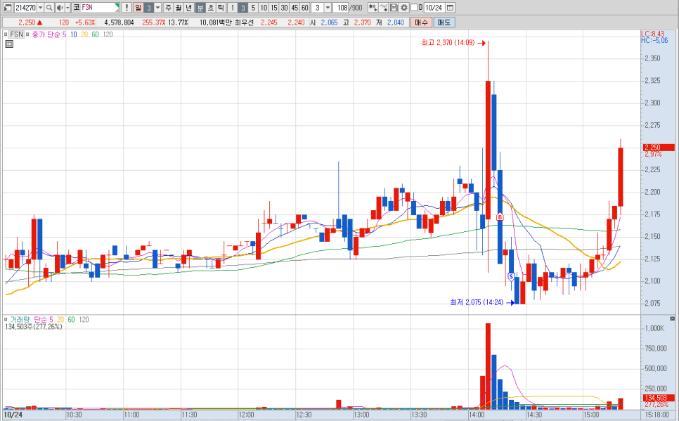 매매를 마무리 하려고 화면 녹화도 중지하고 일어나려 하는 그 찰나에 FSN이 눈에 들어온다.