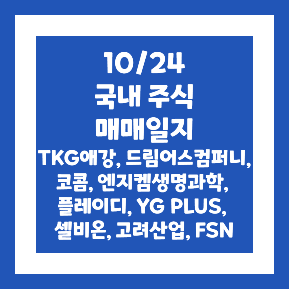 24년 10월 24일 국내 주식 매매일지(TKG애강, 드림어스컴퍼니, 코콤, 엔지켐생명과학, 플레이디, YG P