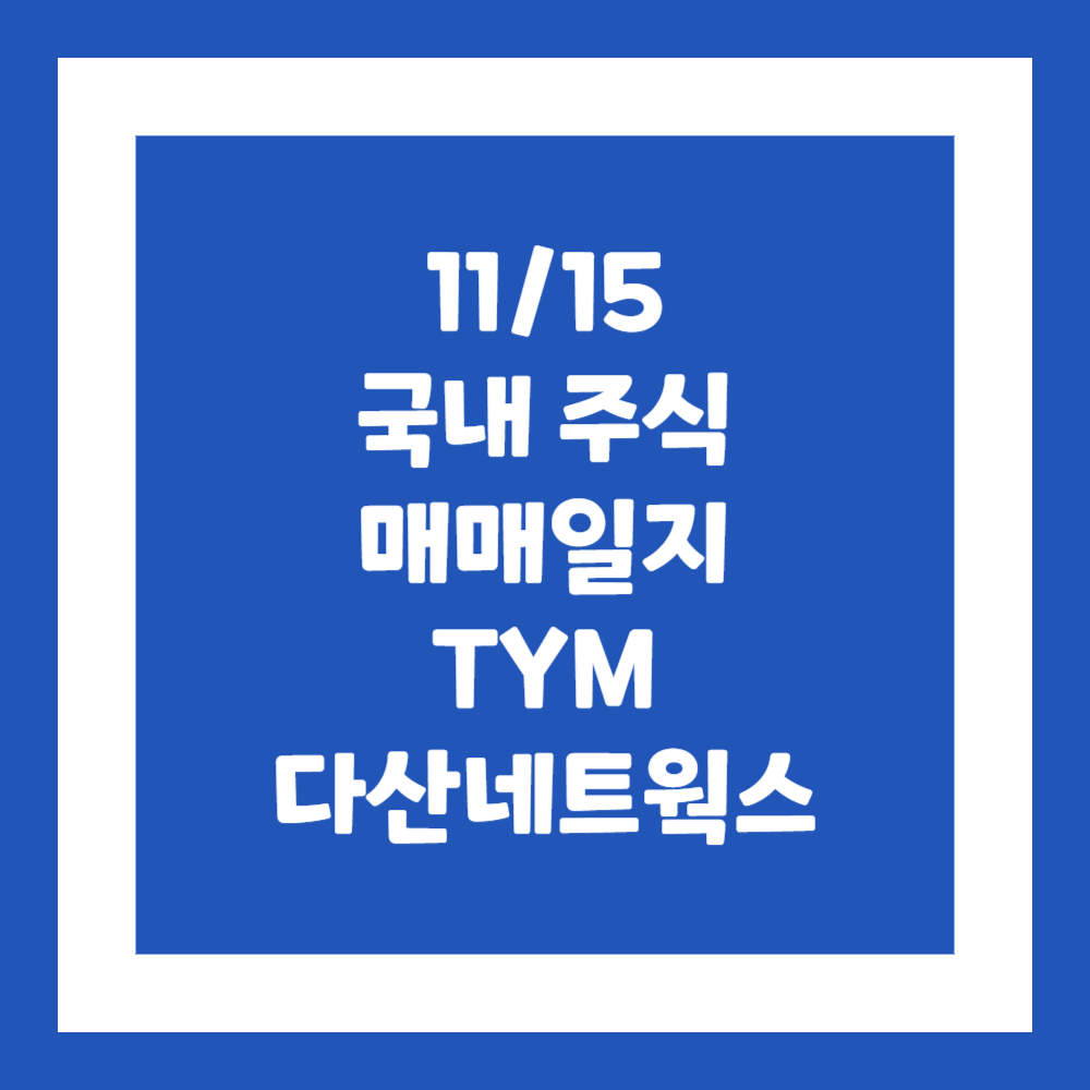 2024년 11월 15일 국내주식 매매일지(TYM, 다산네트웍스)라이프/매매 복기 2024. 11. 25. 17:28반응형
