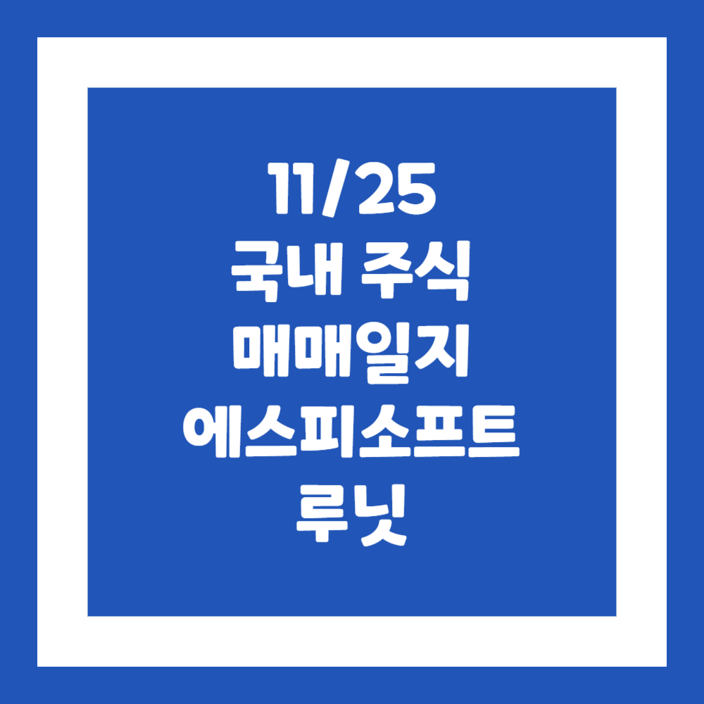 24년 11월 25일 국내주식 매매일지(에스피소프트, 루닛)라이프/매매 복기 2024. 11. 25. 23:10반응형