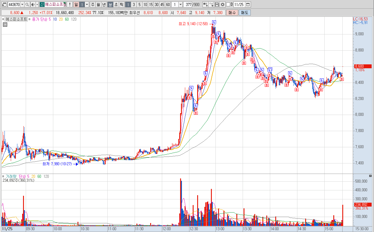 매매종목: 에스피소프트, 루닛