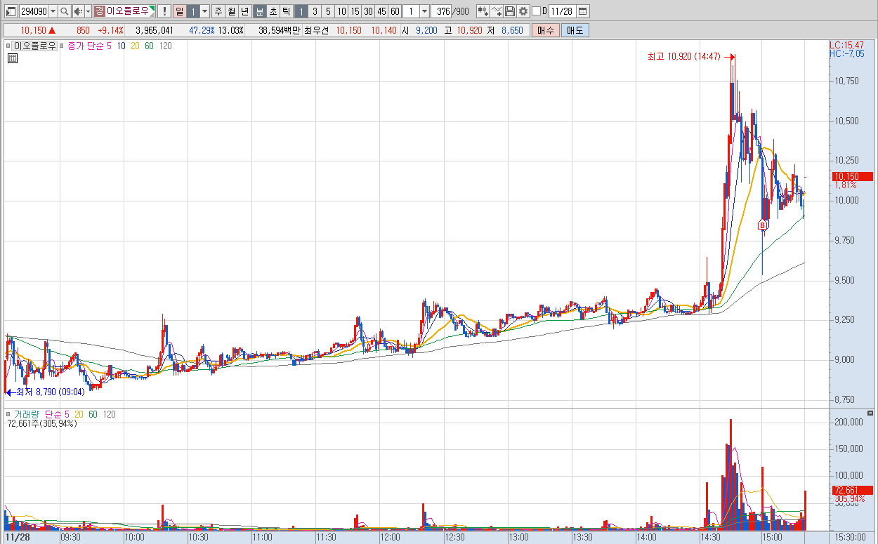 - 27일 거래일 기준 상한가로 마감하며 28일 장 초반에도 상승세 지속.