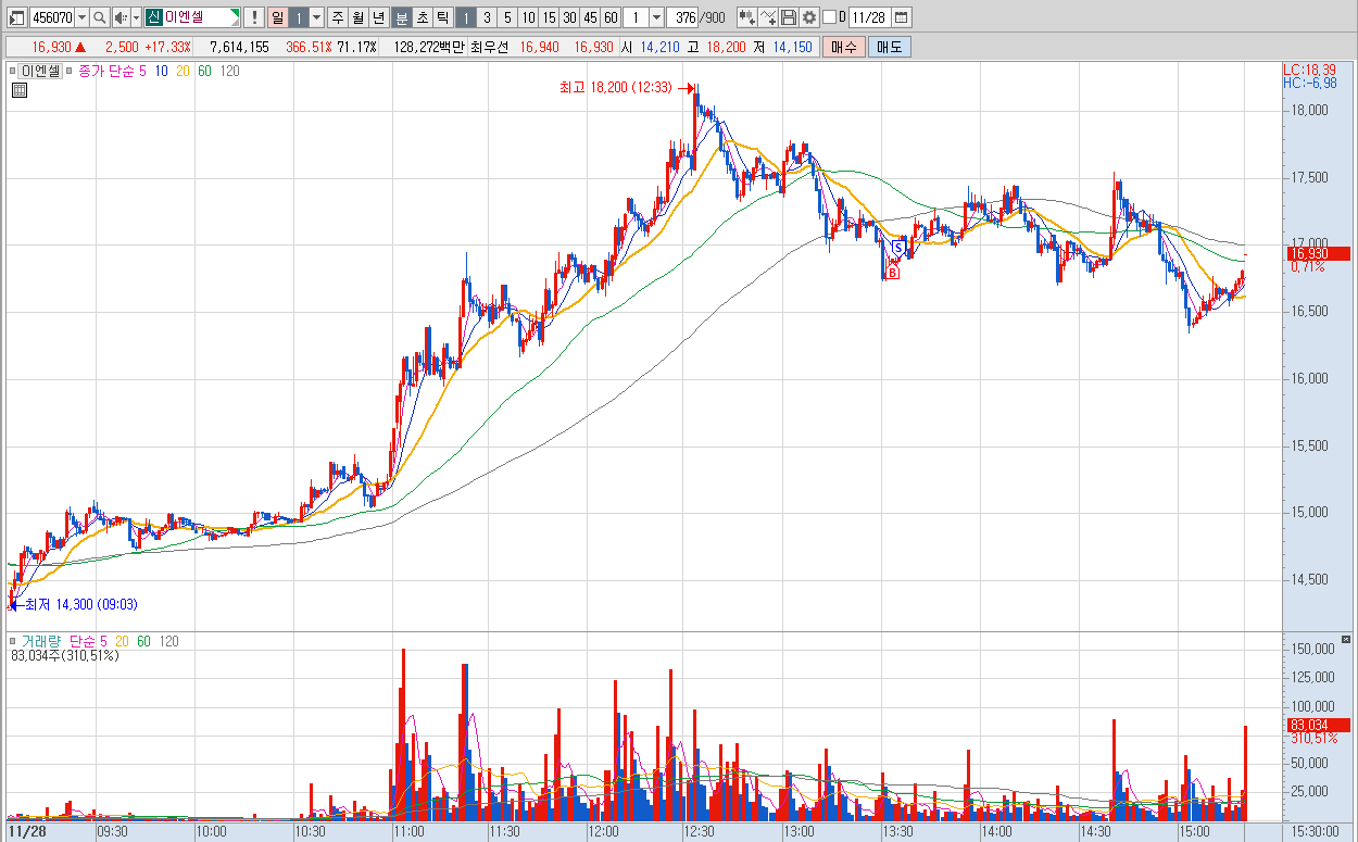 - 중간엽 줄기세포 치료제 'EN001'을 아시아 6개국에 기술이전하면서 급등세 기록.