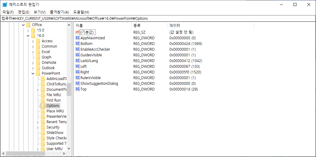 컴퓨터\HKEY_CURRENT_USER\SOFTWARE\Microsoft\Office\16.0\PowerPoint\Options
