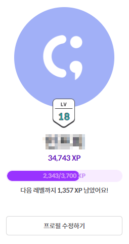 그리고 가장 좋았던 점은 강의를 수강할 때, 그리고 과제를 풀었을 때 경험치를 받게 되는데 게임 캐릭터를 키우는 것이 아니라 스스로를 성장시킨다는 개념이 흥미로웠고 레벨업에 재미를 느껴 밤 늦게까지도 강의를 듣고 과제를 풀곤 했습니다. 최근에는 출석률이 저조하지만 계속 해서 좋은 강의들이 업데이트 되고 있어서 동기부여가 되고 있습니다.