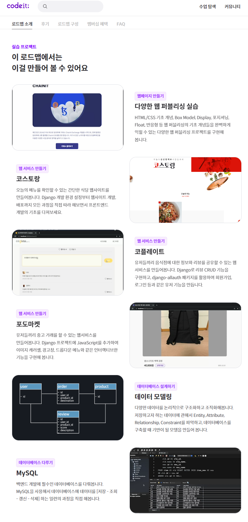 제가 수강 중인 로드맵은 풀스택 개발자 입니다. 전공이 인공지능도 아니고 머신러닝, 딥러닝 스터디를 했었는데 이 정도까지를 원한 것은 아니고 웹 사이트 운영까지 해보고 싶어서 파이썬 강의를 모두 수강하고 CSS와 HTML 강의를 수강하기 시작했습니다.